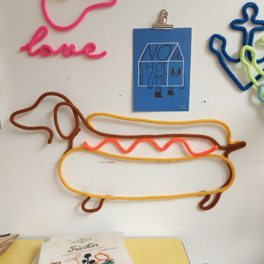 Réalisé entièrement à la main en France. En fil de fer et laine au tricotin.