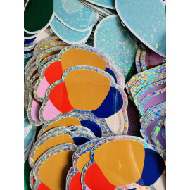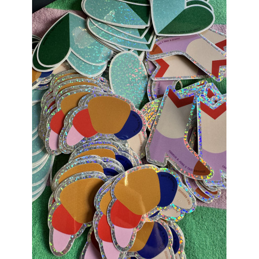Trois modèles de stickers à paillettes : Santiag, croissant ou cœur bicolore.