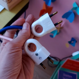 Fil de 3 mètres de long environ, interrupteur et prise 220 V. Matériel français.
