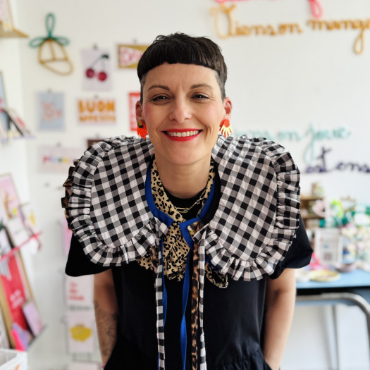 Derrière Scénographyk se cache Mélany! Elle est faisaeuse de boucles-d'oreilles mais pas que! Elle manie aussi très bien la machine à coudre pour réaliser c'est super col en tissus upcyclés!