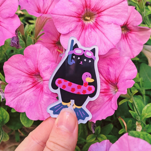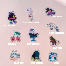 Illustrations uniques à porter sur soi, qu'elle dessine une par une, signe au dos, assemble et package entièrement à la main.