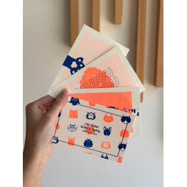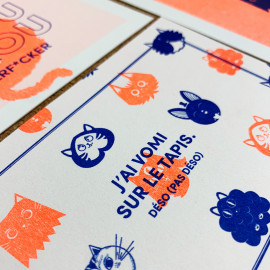 Impression : risographie en jaune et rose fluo (les couleurs peuvent varier par rapport à ce que vous voyez sur votre écran).