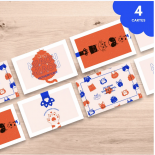 Les différentes collections (vegan, chats, selflove, graphiste), des cartes postales à partager/envoyer ou des bingos à afficher fièrement et prochainement d'autres produits verront le jour!