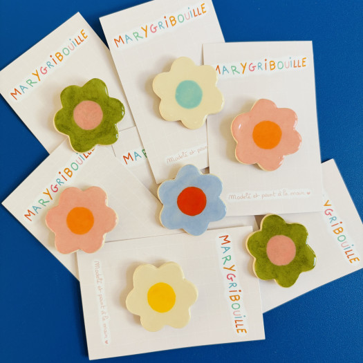 Broches fleurs en céramique modelées et peintes à la main par Maryloup.