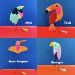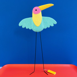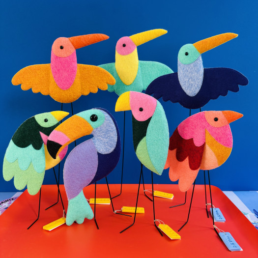 Tous ses Piafs sont cousus entièrement à la main. Ils sont en feutrine de laine (mérinos et rayonne).