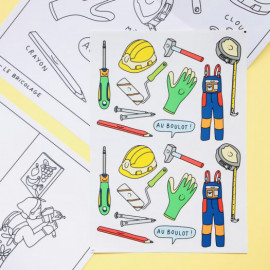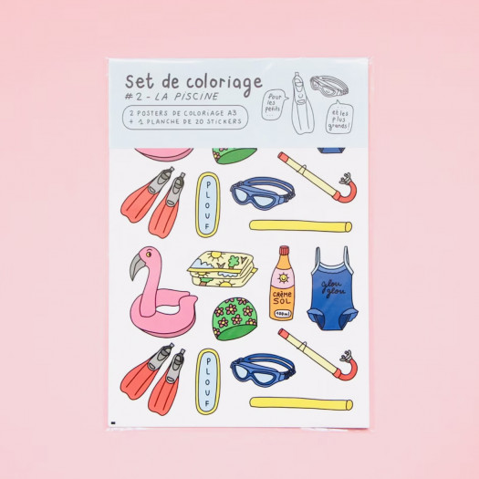 Dans ces sets de coloriage #2, retrouvez 2 posters A3 à colorier (avec deux niveaux de difficulté pour amuser toute la famille) + 1 planche de 20 stickers assortis sur le thème de la piscine ou du bricolage!