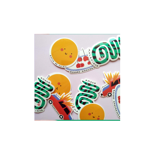 Les stickers sont en vinyle. Ce matériau est solide, fiable et polyvalent, parfait pour une utilisation en intérieur ou en extérieur. Ils résistent aux UV, de sorte qu’ils resteront brillants et vibrants pendant 4 ans. Les stickers sont emballés individuellement dans un plastique transparent.